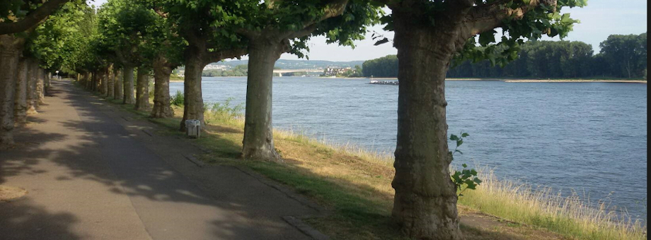 Von Mülheim/K. durch die Kurfürstenstr. und die Heeresstr. nach Kettig. Unter der Brücke (B42) durch nach Weißenthurm und über die Ampel geradeaus zum Rhein. Dann den Rhein aufwärts bis Kaltenengers und zurück nach Weißenthurm. Über die Weißenthurmer Str. zurück nach Mülheim/K. Das ist eine von etlichen Touren, die ich morgens vor der Arbeit fahre, wenn ich Spätschicht habe.