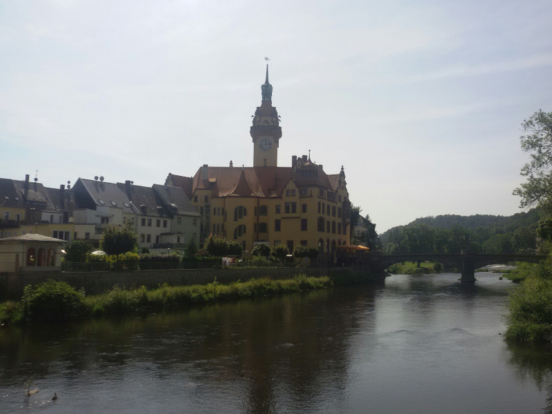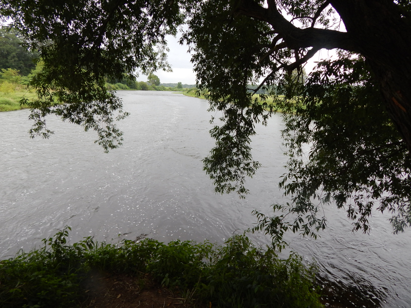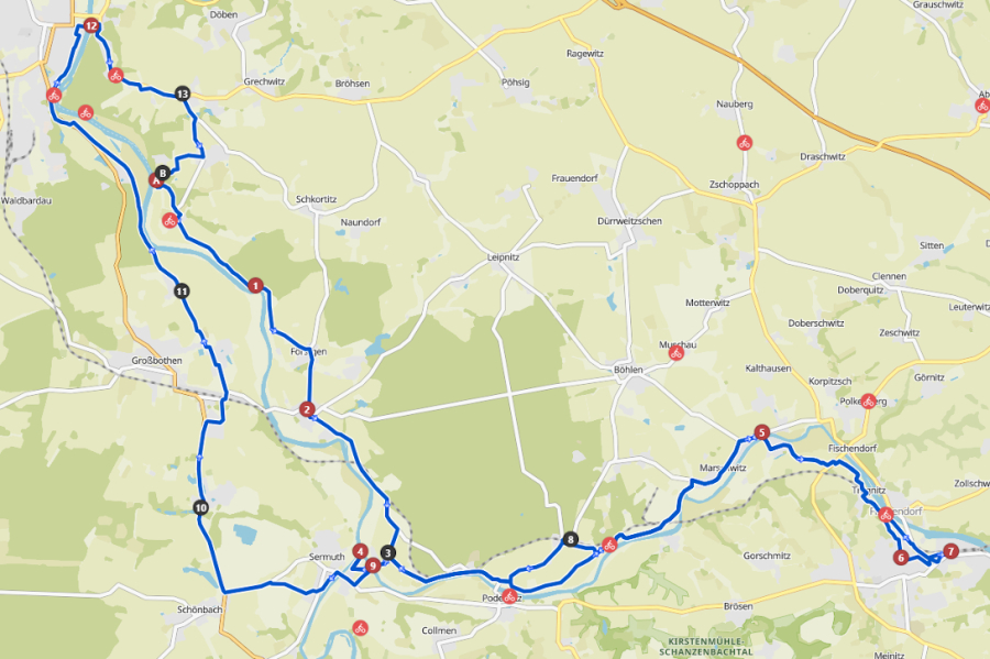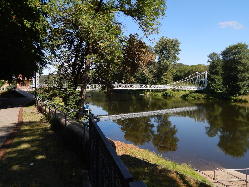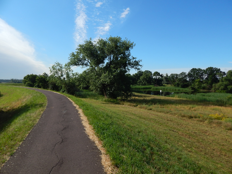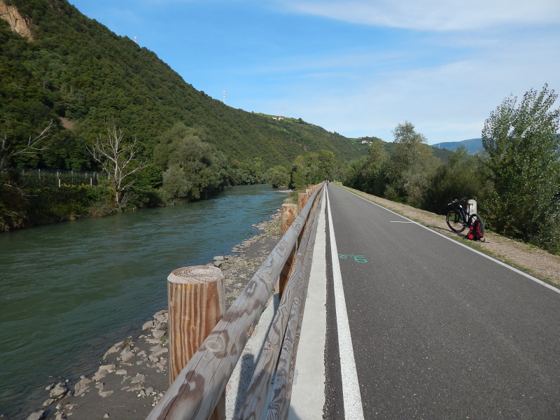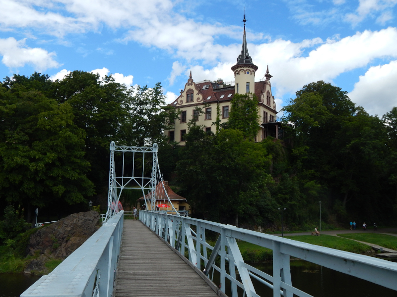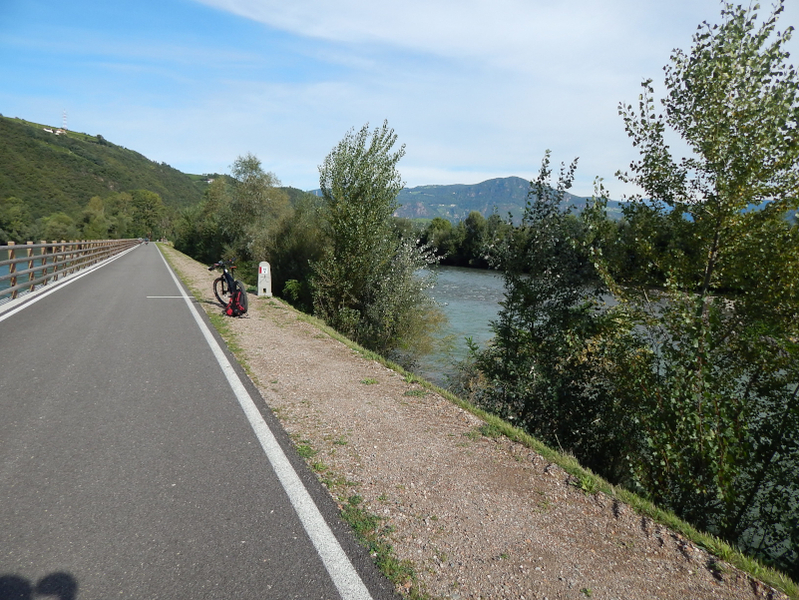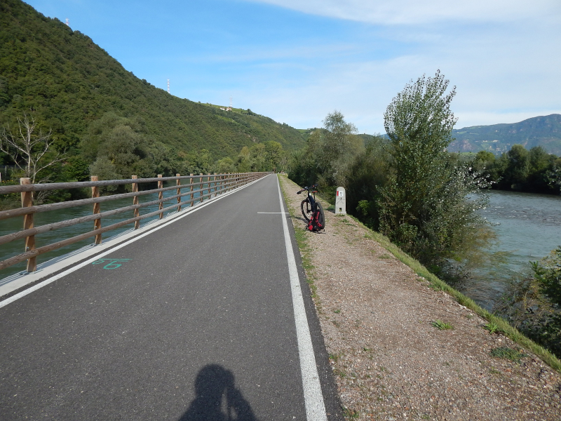 Radweg dorthin sah wie auf dem Bild unten aus. Langsam wuchs der Ärger. Also zurück bis hinter die Pension, über die Brücke am Wasserfall in den Elbauen, wo die nächsten zwei Bilder mit dem gewollten