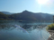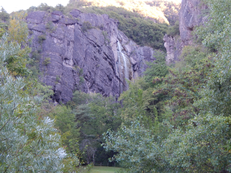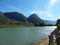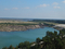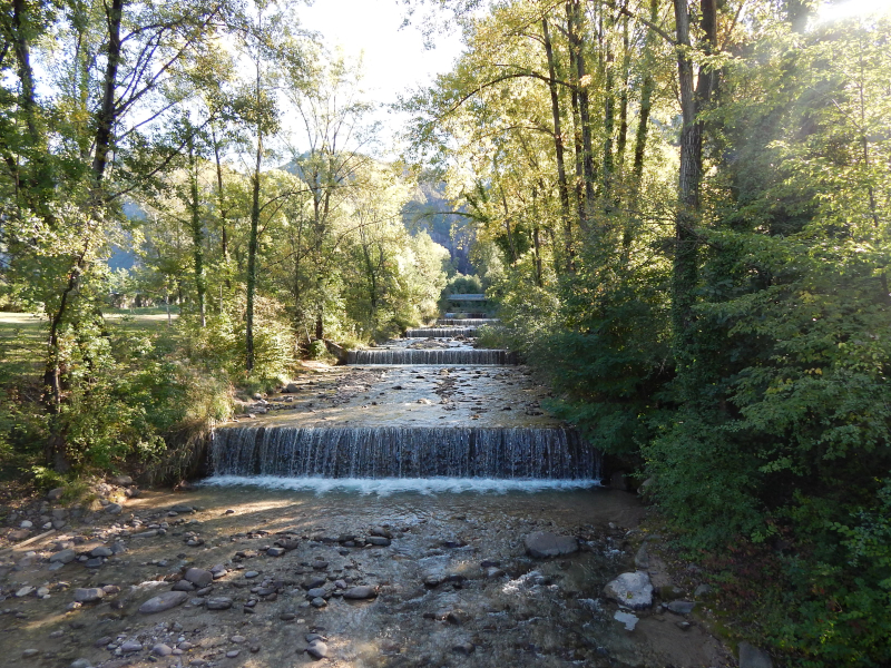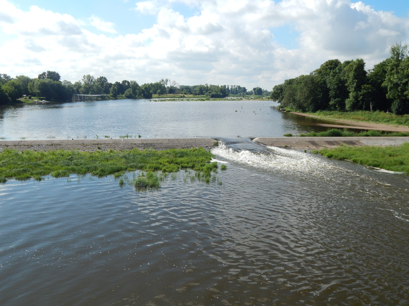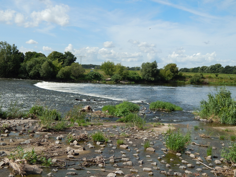 Dammdurchbruch (Wasserfall) und die andere Seite der alten Elbe zeigen. Trotz "Wasserfall" nicht all zuviel Wasser.