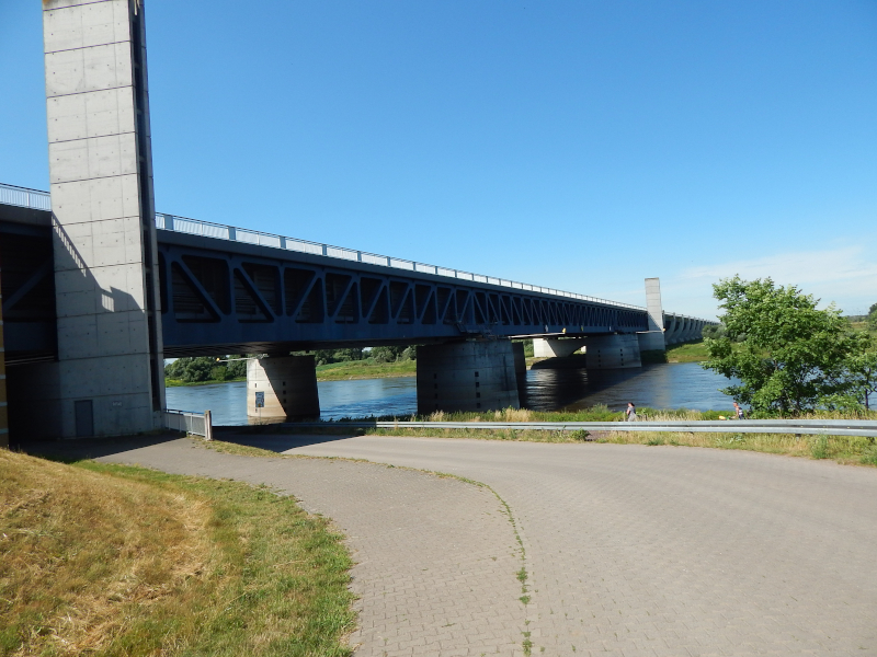 Strecke nicht zurückfahren wollte. Direkt hinter der Elbbrücke kann man auf den Deichradweg fahren. Hier allerdings wiesen Umleitungsschilder auf die Sperrung hin. Den U-Schildern folgend, ging