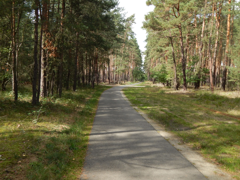 es nach Grünewalde. Hinter Grünewalde fährt man nun durch ein Waldgebiet, wo der Friedwald Schönebeck angelegt wurde. Die Verstorbenen werden an kleinen Bäumen beigesetzt (Urnen). Es mist kein