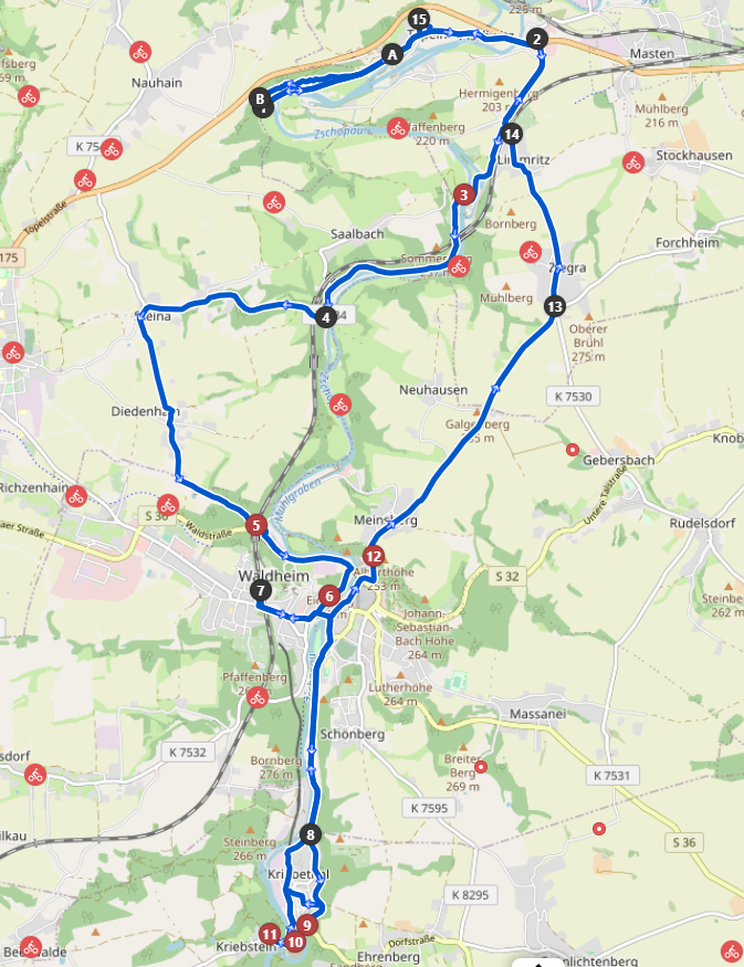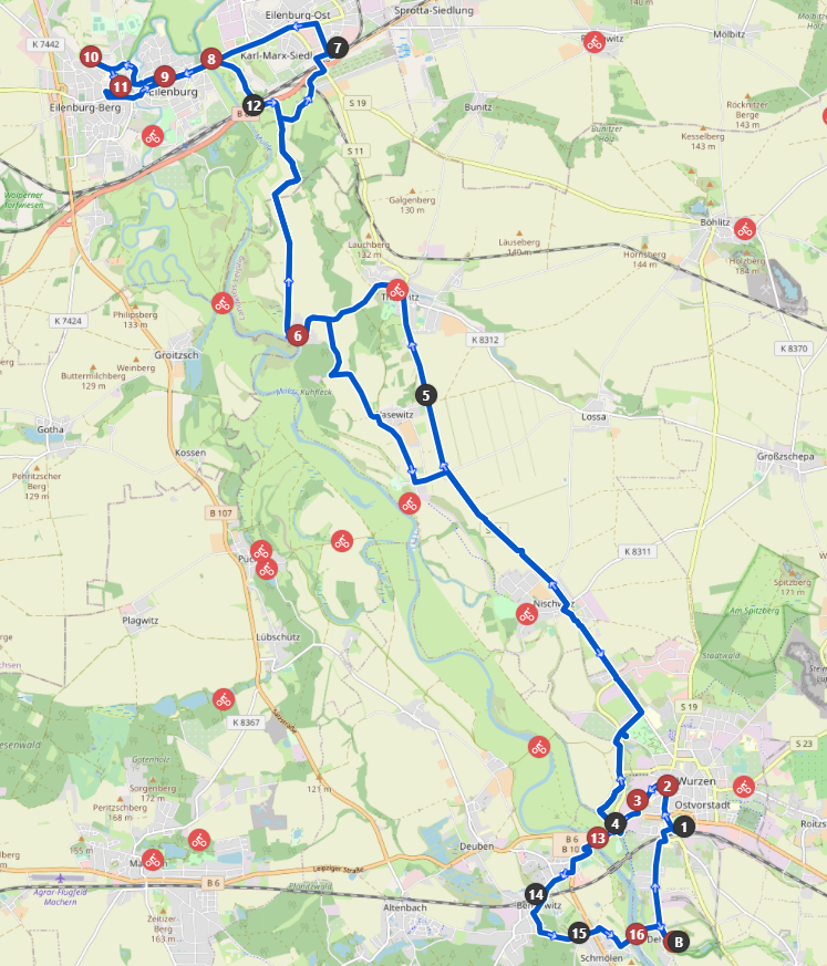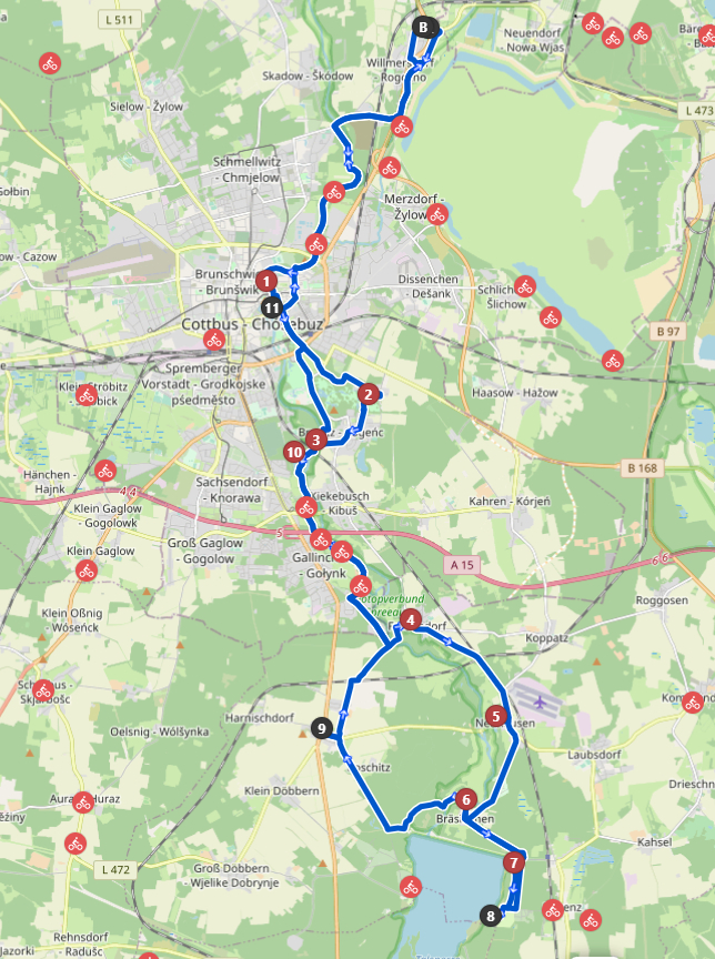 Hauptweg ab. Da diese ohne Zielbeschreibungen sind muß man schon ein bißchen Orientierungssinn haben, sonst fährt man dort ewig rund. Höhenmeter spielen auf dieser Tour keine Rolle, es geht flach