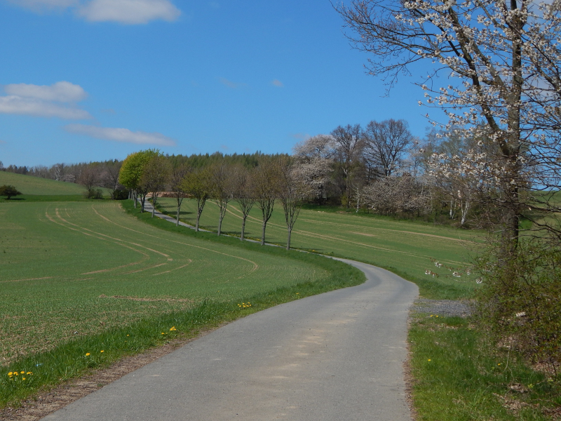 Da ich meine geplante Osterreise wegen Schlechtwetter gestrichen habe, ging es für drei Tage nach Sebnitz oberhalb von Bad Schandau. Die ersten zwanzig Kilometer fuhr ich auf dem Bahntrassenradweg bis Halbendorf. Dem Spreeradweg folgend ging es dann bis Eulowitz, dort dann links ab in Richtung Schirgiswalde. Unter dem Viadukt durch wurde es ab hier dann steiler. In Schirgiswalde selbst bis zu 21 % Steigung bis nach Weifa. Aber auch von Weifa bis Neukirch ging es permanent auf und ab. Oberhalb Neukirch stand eine Parkbank fast mitten in den Rapsfeldern, dort war erstmal Pause. Während man bis jetzt entweder auf Radwegen oder kleinen Landstraßen fuhr, ging es hinter Neukirch für gut zehn Kilometer durch den Wald. Die Wege waren mal gut, mal weniger gut zu fahren. Vor allem wo Forstarbeiten betrieben wurden, war der Radweg im Wald in einem miserablen Zustand. Erst zehn Kilometer vor Sebnitz endete der Wald, ab jetzt ging es wieder auf Radwegen oder ziemlich verkehrsberuhigten Straßen weiter. Allerdings ging es weiter auf und ab, wobei die Steigungen ziemlich heftig waren. 65 gefahrene Kilometer und über 1000 HM bergauf belegen das. Nach einem Kaffee in Sebnitz ging es dann die letzten Meter in mein Urlaubsquartier im kleinen Vorort Hertigswalde, wo ich die nächsten drei Nächte verbringen werde.
