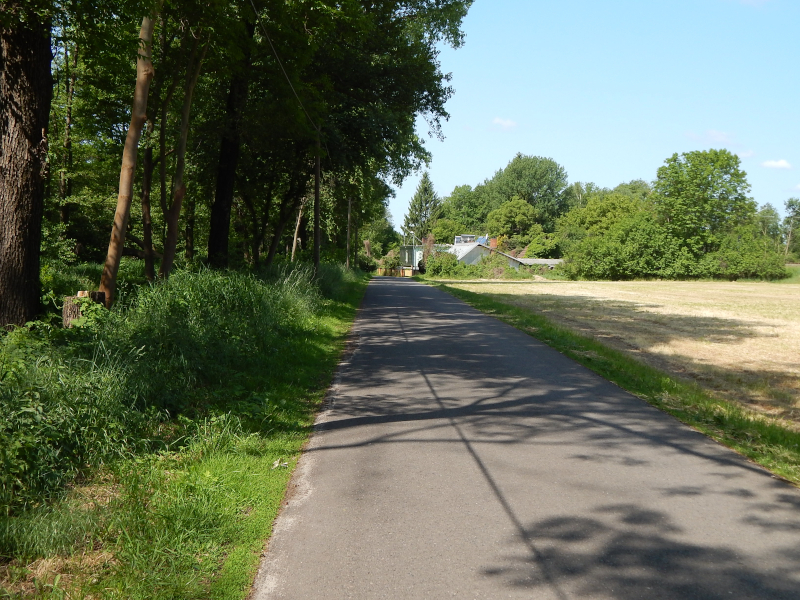 Da es für´s Hotel noch etwas früh war, fuhr ich noch ein Stück auf dem Schwarze Elsterradweg bis Klossa. Hier geht es auf einem sehr schönen Weg fast die ganze Strecke durch den Wald. Die ganz große Hitze vom Vortag hatte zwar etwas nachgelassen, es war aber immer noch ziemlich drückend. In Klossa dann gewendet und den Waldweg zurück nach Jessen.