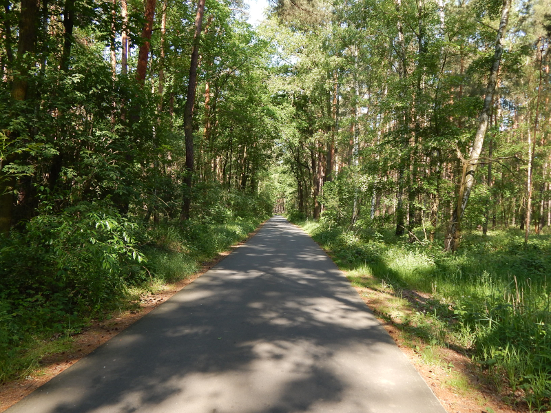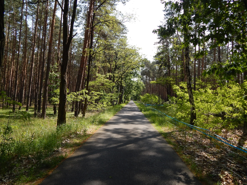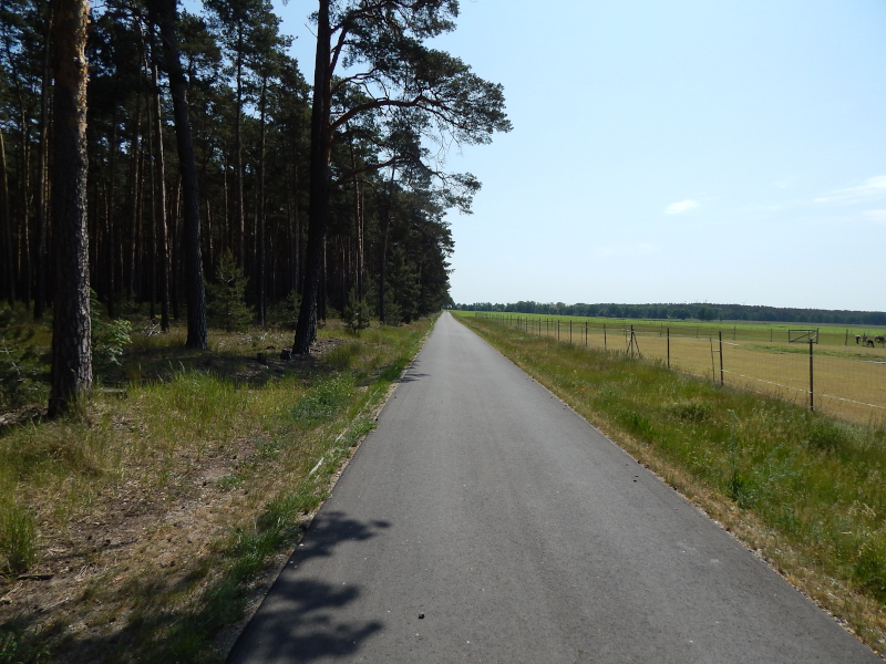 Viel zu berichten gibt es von meiner heutigen 6. Tour leider nicht. Durch die Peitzer Teiche ging es nach Peitz selbst, und dann weiter in den kleinen Ort Preilack. Dort einmal scharf links und anschließend scharf rechts. Man befindet sich nun auf dem Heidebahnradweg. So wie auf dem Foto unten zu sehen, so verläuft dieser Radweg über zwölf Kilometer nach Jamlitz. Schnurgerade, nagelneu (1/2 Jahr alt) und nur durch den Wald. Wem da zu eintönig ist, der kann auf dem parallel daneben verlaufendem Waldweg fahren (Mtb´ler). In Jamlitz endet dieses Prachtstück dann. Geplant war eigentlich die Weiterfahrt in Richtung Lieberose. Ein Einheimischer aus Jamlitz riet mir davon ab, weil man jetzt ohne Radweg auf der B 320 weiterfahren muß, Und diese Straße ist die Hauptverkehrsstraße für polnische LKW, die nach oder von Guben/Gubin kommend unterwegs sind. Also zurück und den Heidebahnradweg ein zweites mal genossen. In der Mauster Mühle war dann Zeit für eine Stärkung. Um noch einigermaßen auf meine Kilometer zu kommen, ging es nochmals am Ostsee entlang zum Aussichtsturm Merzdorf, von dort durch den Branitzer Park auf dem Spreeradweg zurück nach Willmersdorf.