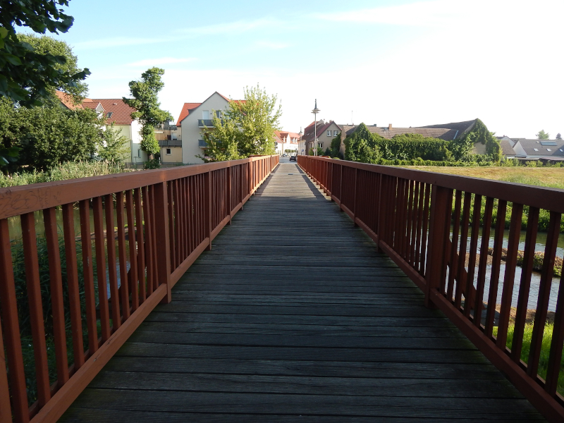 Meine erste Tour führte mich auf dem Schwarze-Elsterradweg Richtung Norden. Über die kleine Holzbrücke direkt bei meinem Hotel gelegen ging es dann durch Jessen durch und neben der Bundesstraße 187 hinter das Jessener Industriegebiet. Anschließend ging es links ab auf den Elsterradweg. Bis zur Stadt Elster ging es die ganze Zeit durch den Wald auf asphaltierten Wegen. In der Stadt Elster selbst, die zwar ihren Namen von dem kleinen Nebenfluß der Elbe hat, selbst aber nicht an der Elster sondern an der Elbe liegt, wechselt man nun auf den Elberadweg, da der Schwarze Elsterradweg hier endet. Meist geht es durch die Elbauen, von wo man die Elbe nur gelegentlich sieht. Nach fünfzehn Kilometern Elberadweg fuhr ich dann in die Lutherstadt ein. Ziel war das Lutherhaus und die Schloßkirche. Anschließend gab es in einer Eisdiele ein kühles Getränk und ein Eis. Es war heute mit bis zu 35 Grad ein sehr heißer Tag.