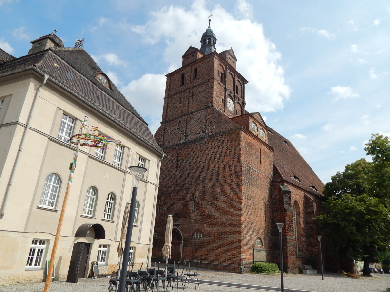 An den Lausiger Teichen vorbei, wo es einen kleinen Stellplatz für Zelter und Wohnmobilfahrer gibt, fährt man auf der Straße weiter bis kurz vor Greudnitz, wo man endlich auf den linksseitigen Elberadweg trifft, der einen quer durch die Felder nach Dommitzsch bringt. Die imposante Kirche war dann doch ein Foto wert. Mit der Fähre Dommitzsch ging es dann in die kleine Stadt Prettin, die ebenfalls eine alles überragende Kirche hat. Sie war genauso ein Foto wert wie der Lichtenburger Torturm, der ganz in der Nähe der Kirche zu finden ist. Anschließend ging es auch hier auf der Straße über Lebin und Gerbisbach zurück nach Jessen.